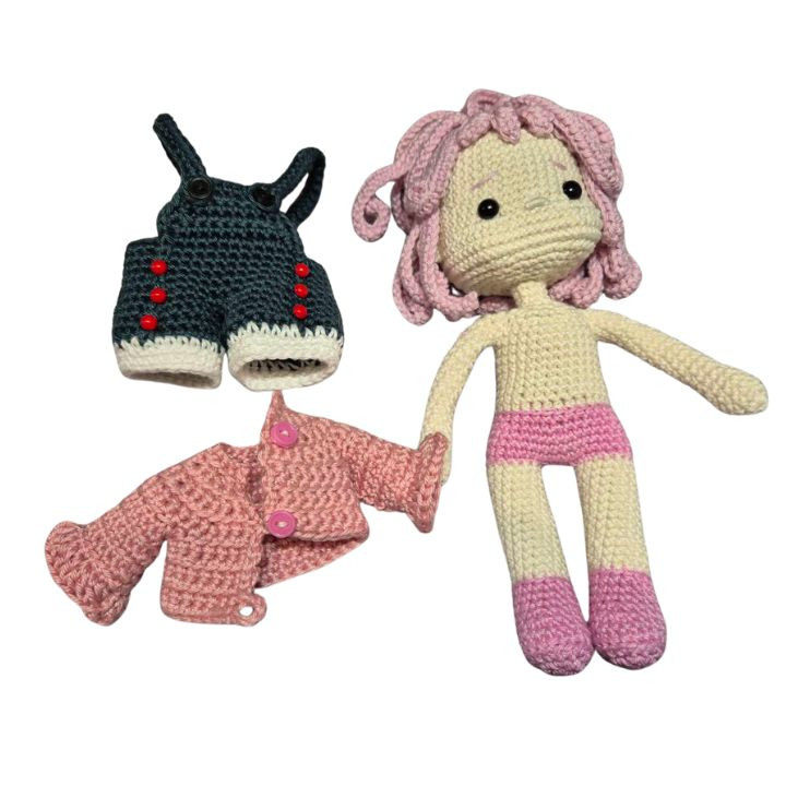 Öltöztethető játék: A horgolt babák könnyedén öltöztethetők, így segítenek a kreativitás és a finommotorikus készségek fejlesztésében.