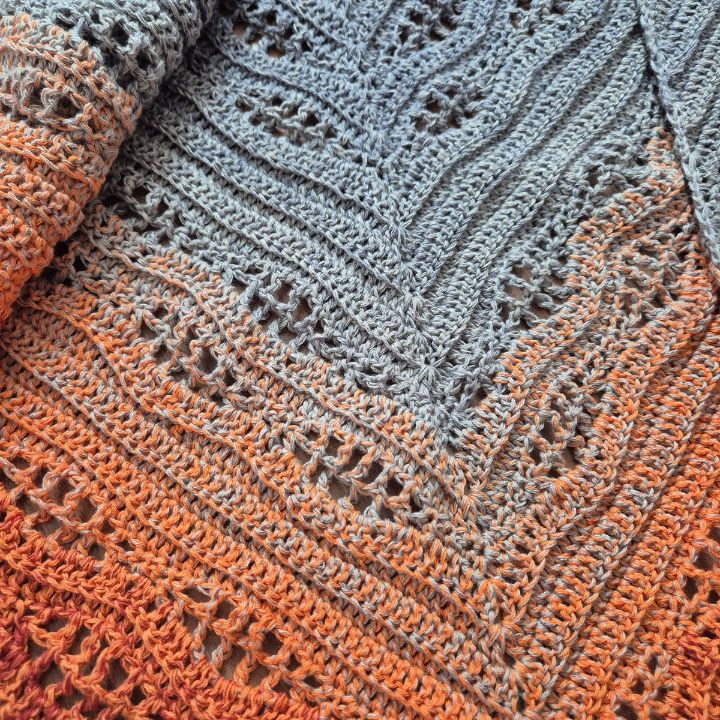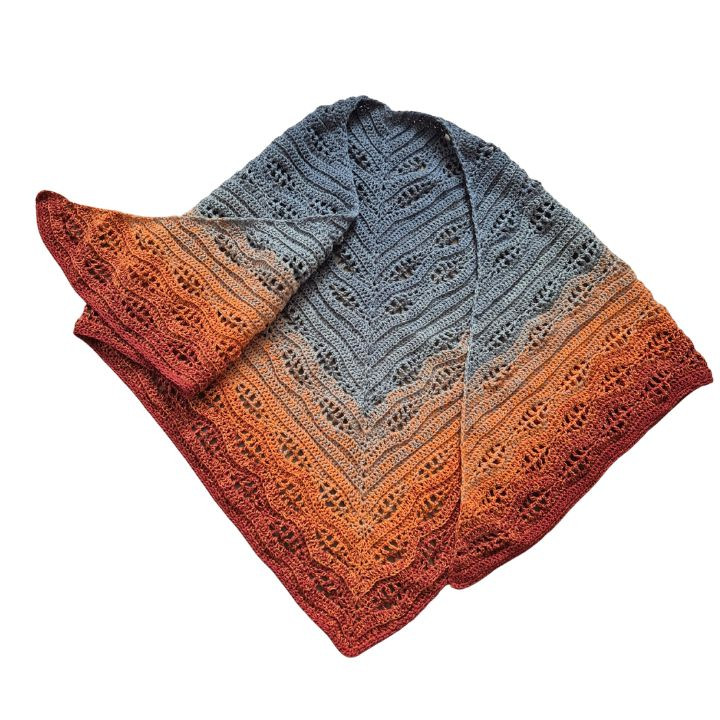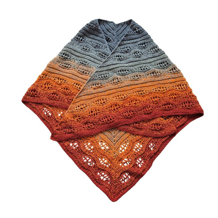 Horgolt, színátmenetes, háromszög kendő.